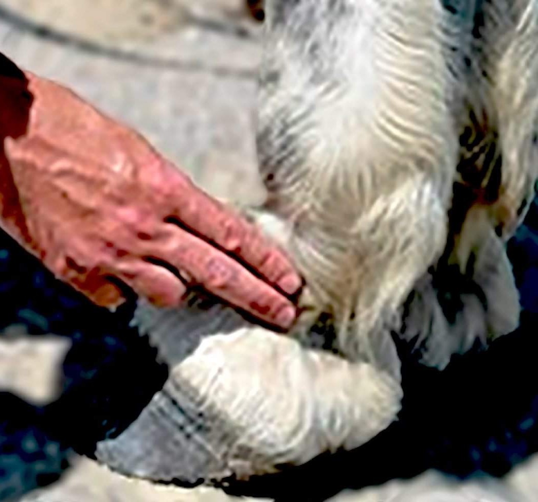Indikerar smärta i hoven. Den känns på vardera sidan på bakre, nedre delen av kotan, eller nedanför kotan (det är normalt med svag puls).