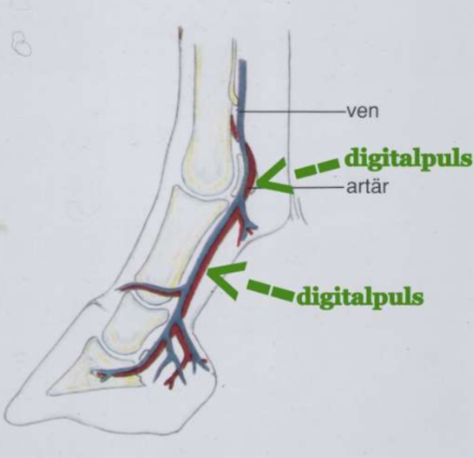 Hästen har blodkärl på in- och utsidan på bakre delen av kotan på alla fyra ben. Det är helt naturligt att man känner hästens puls där om man känner noga. På de flesta hästar känns den bara svagt och man kan få känna en stund för att uppfatta pulsen.
