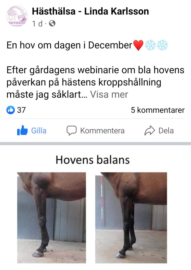 Det kan leda till att hästen börjar hänga i knäna. Det ser ut såhär