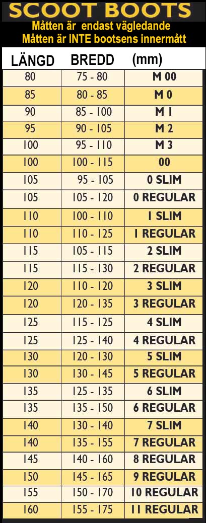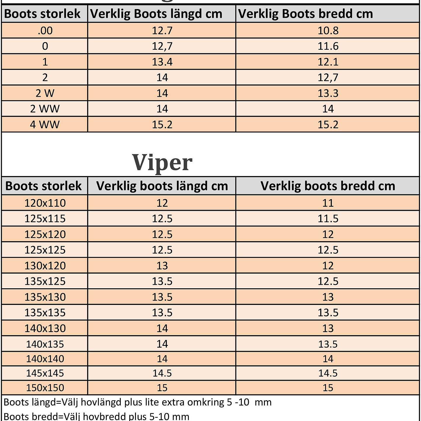 OBS! Storlekarna S, M, L & XL refererar till själva bakstycket, gaitern på bootsen.