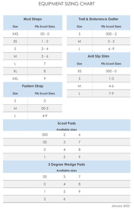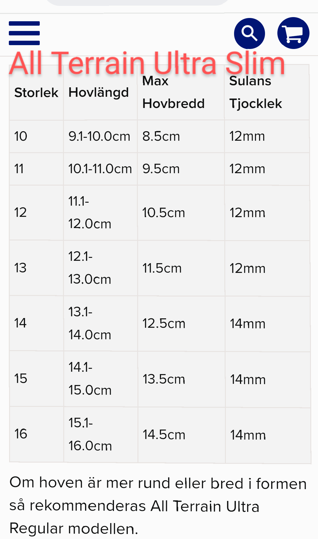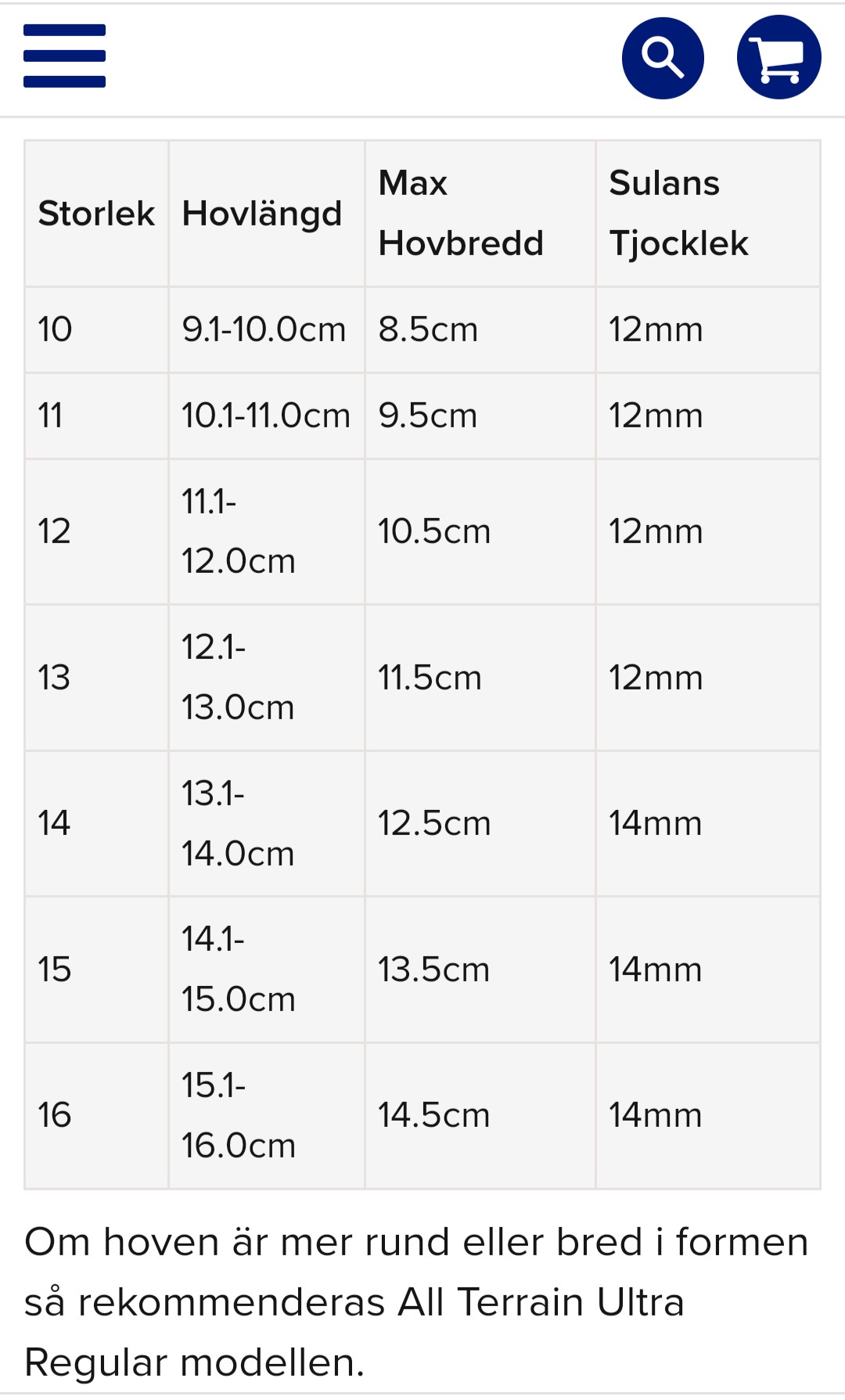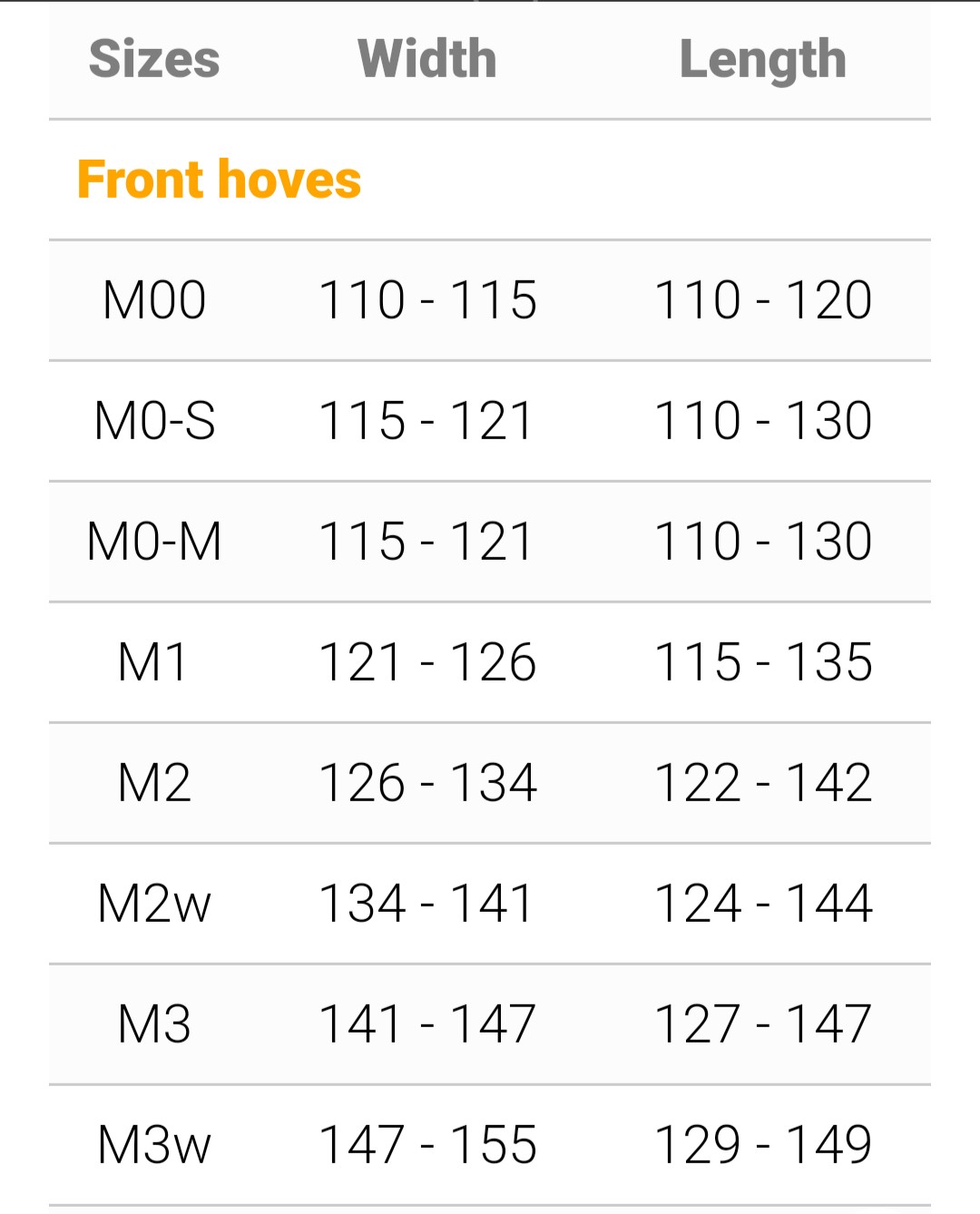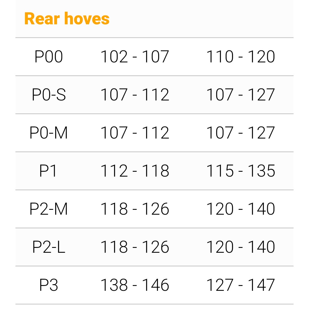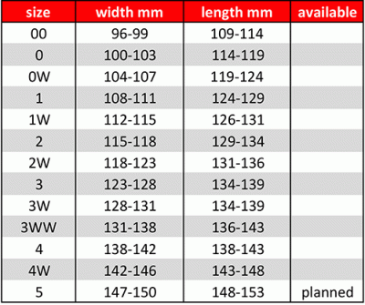 Nytt är oxå att en storlek kan ha två olika s.k gaiters en för “standard” hoven och en för “icke-standard hoven”.