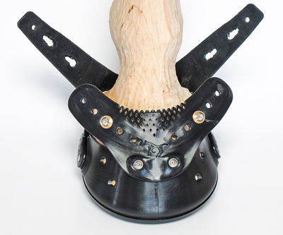 På andra modellen är insidan av sulan platt och nopprig för mindre rörelse/glidmöjlighet för hoven.