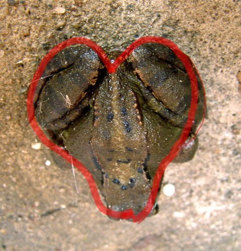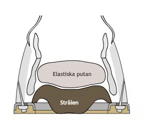 Bild 2: Grå delar är skelett, vitt sidobrosk, gult elastiska putan.