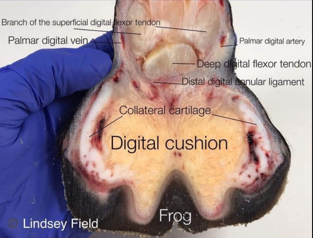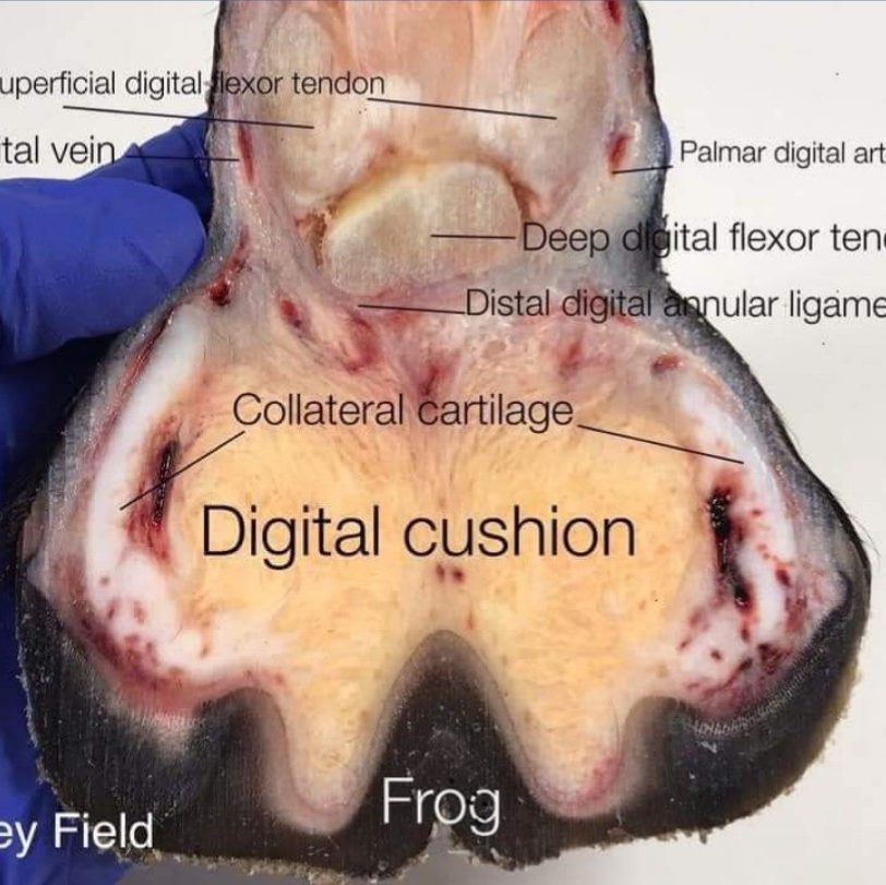 Formen för hovens stötdämpning följer samma idé som den vi skapar för en mänsklig fot i våra egna skor, det är mycket tydligt när man studerar den anatomiska strukturen.