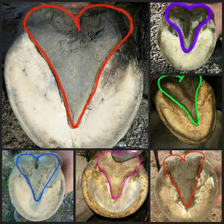 Här ser vi hur mjukdelarna bak i hoven växer när dem får möjlighet att belastas (utan hindrande järnsko) samtidigt som andra delar på hoven verkats bort och kan få hoven att se mindre ut. Men hela hoven har inte blivit mindre. 😊