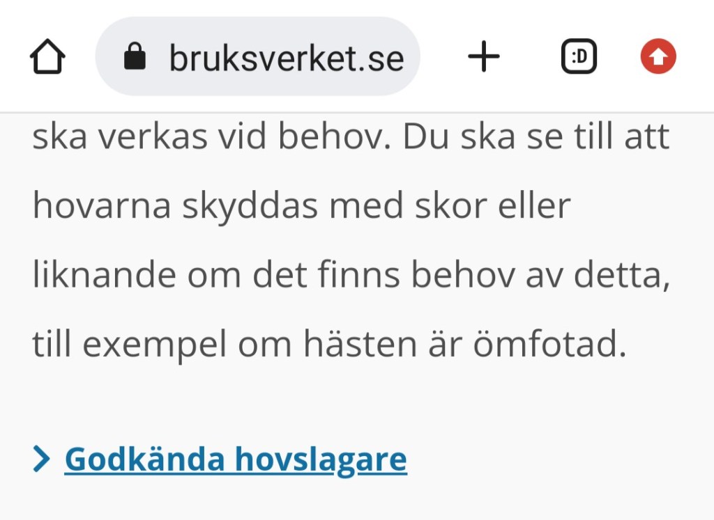 NÄR behöver hoven ett skydd är oxå en fråga som är relativt lättbesvarad då man på Jordbruksverkets hemsida läser att det behövs OM hästen tex är ömfotad. Det är inget som behövs 24/7 OM det inte finns behov 24/7 :
